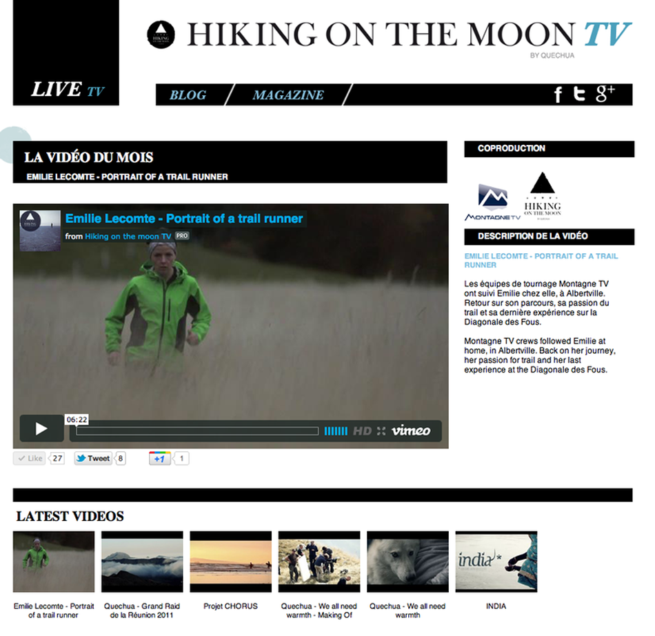 Réalisation de deux documentaires de 6 minutes en coproduction Montagne TV et Quechua, diffusés sur l'antenne de Montagne TV et sur la web TV Hiking on the Moon.